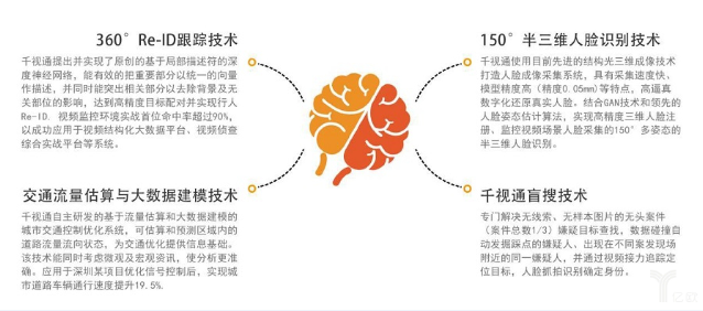 千視通的視覺技術(shù),是通過特定場景捕捉人、車、物、事件,再把視頻中的物件分解,讓純粹的像素內(nèi)容變成有含義可再推理的信息單元,為后續(xù)的大數(shù)據(jù)分析提供原材料。其原創(chuàng)的360°跨鏡追蹤Re-ID、150°人臉識別、交通感知等,都是構(gòu)成感知世界的核心技術(shù)。
