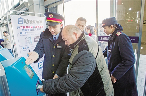 身份證和車票的放置方式一定要正確,車票上的二維碼要朝前。